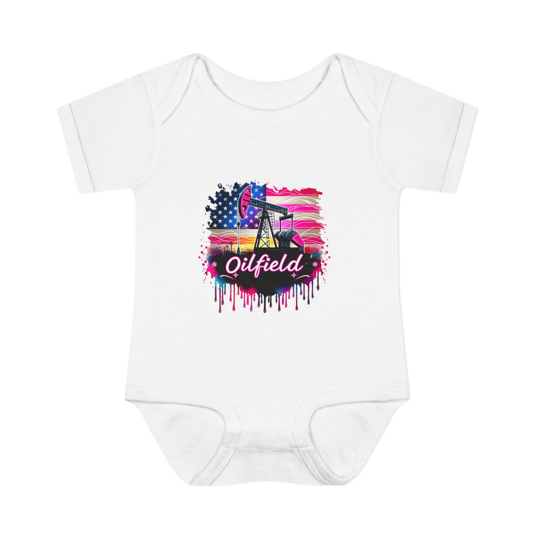 Patriotic American Flag Oilfield Baby Bodysuit Shortsleeve Soft, breathable infant bodysuit with a bold oilfield-themed...