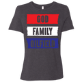 - Tri-blend has a heather look for all colors